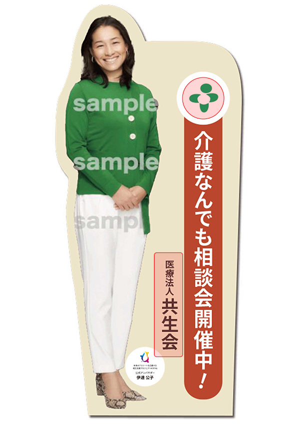 等身大パネル、A2パネル、A4チラシ、のぼり、クリアファイルのご注文を承ります。